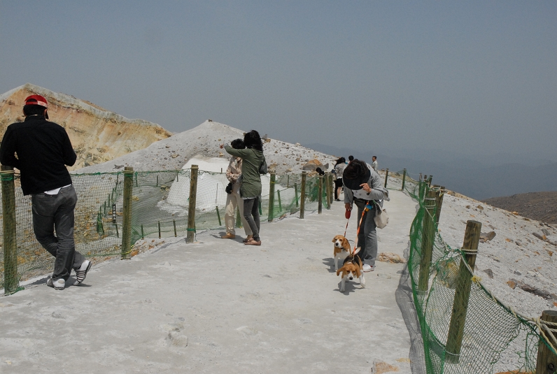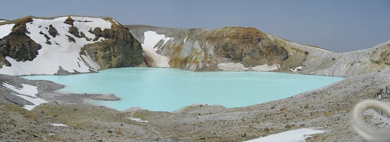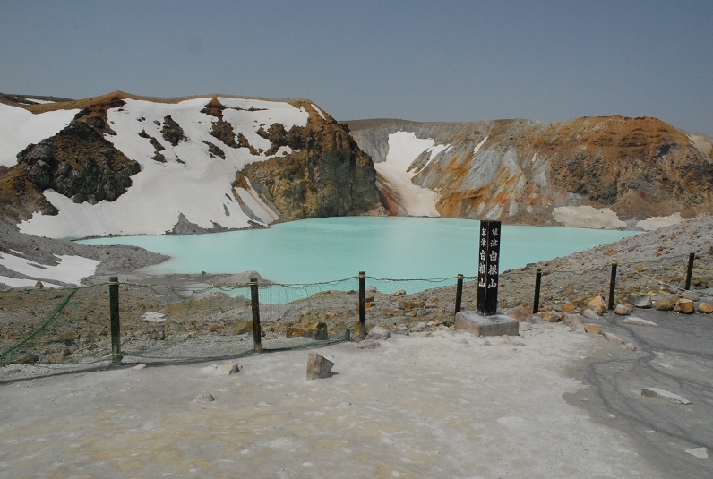 湯釜は世界一の酸性湖でPH1,2の濃度で魚も住めないほどの強度の酸性湖です。